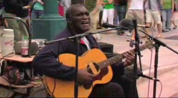 The song Stand by me sung cooperatively by a range of homeless people across a number of countries. Click the photograph or here for the song Stand by me. |