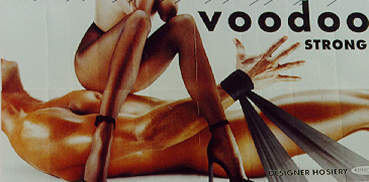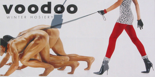 Examples of Sexual innuendo advertising The Voodoo pantyhose ads targeted both men and women. Appealing to the image of dominatrix and to that of being pleasantly dominated. Whenever this sort of Voodoo ad appeared, records showed that there was a spike in increased sales -- the main buyers were women.